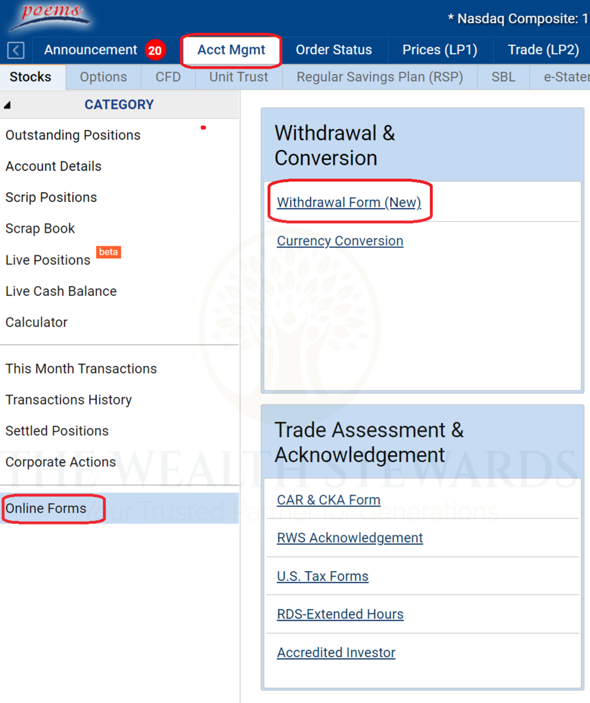 Open your POEMS Desktop profile and click on “Acct Mgmt” at the top;