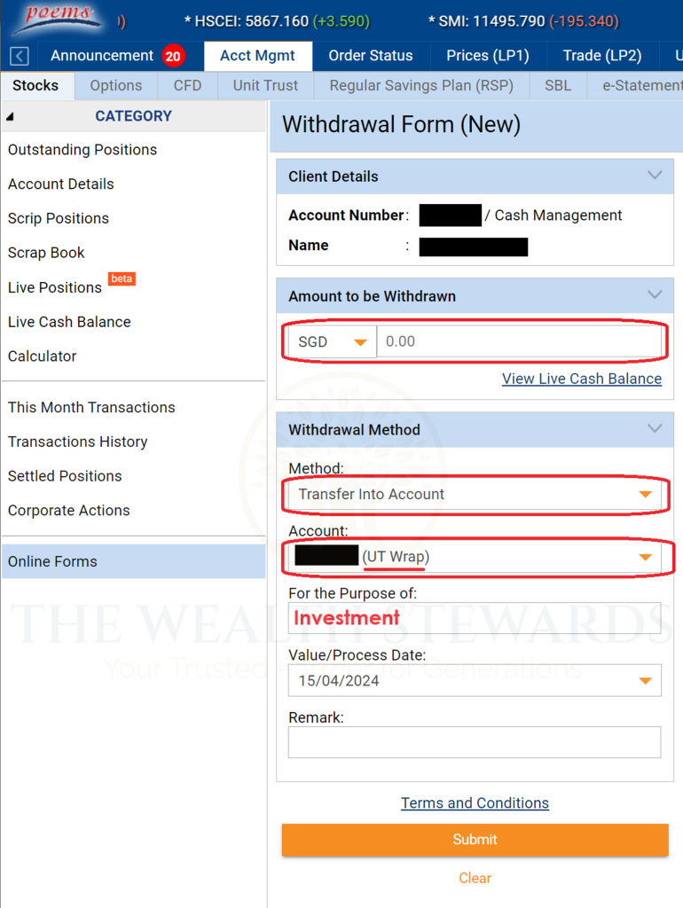 Subsequently, under “Account” choose “UT wrap account with the corresponding account number”;