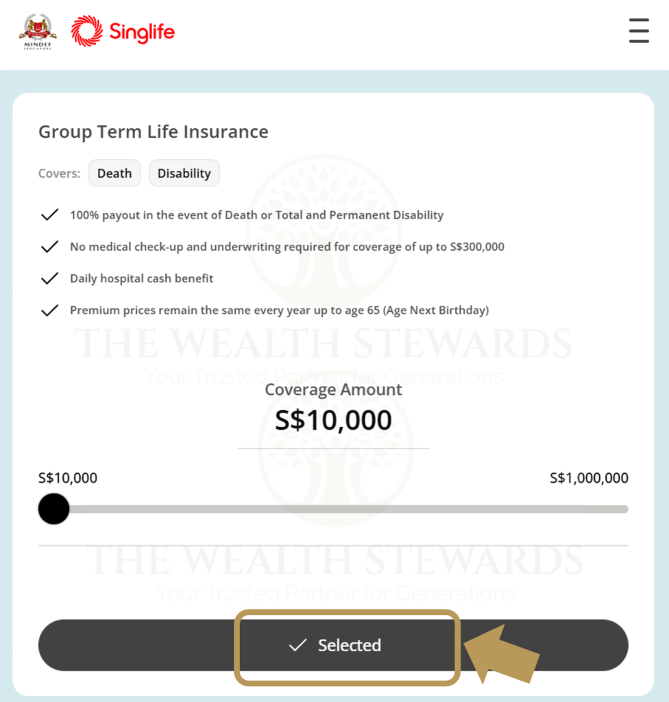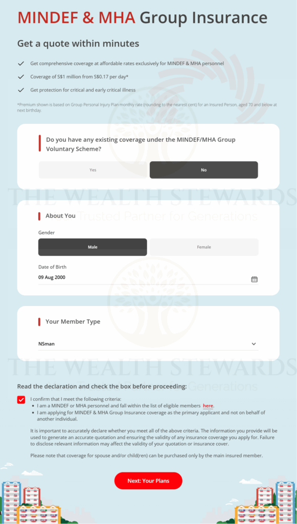 Note that this is only available if you do NOT have existing MINDEF/MHA Group Insurance.