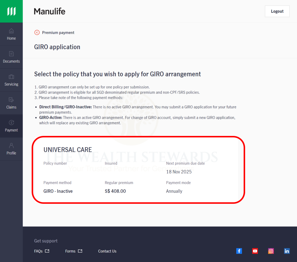 GUIDE: Insurance - Renewal - Manulife (GIRO)